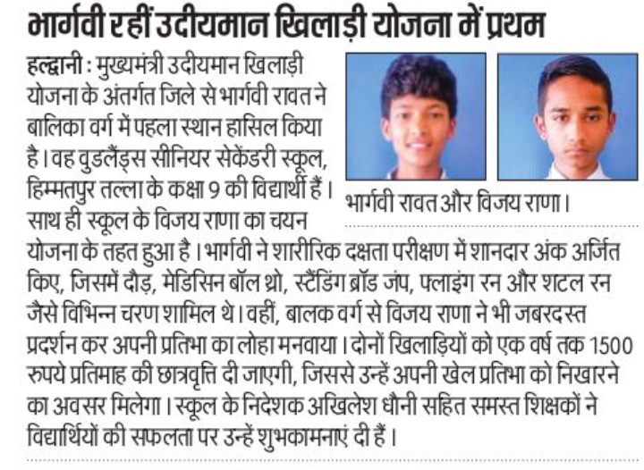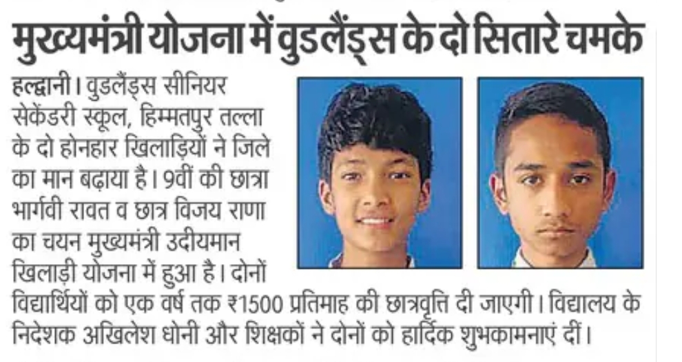 *वुडलैंड्स सीनियर सेकेंडरी स्कूल के उदीयमान सितारे: भार्गवी रावत और विजय राणा का मुख्यमंत्री उदीयमान खिलाड़ी योजना में चयन 25.04.2025