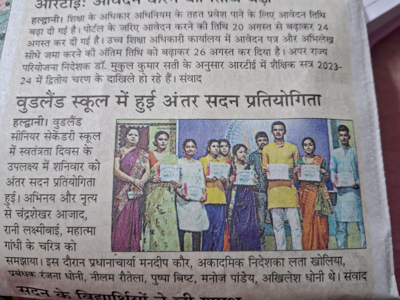 \"19/8/2023 को विद्यालय में \"अन्तर सदन प्रतियोगिता\"